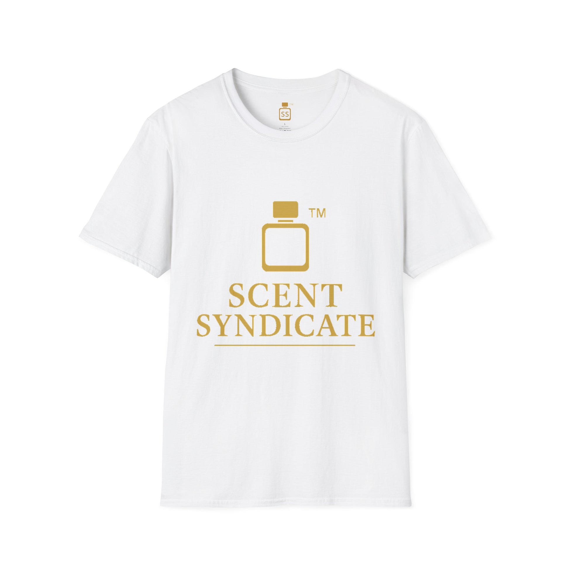 - White T-shirt with gold Scent Syndicate™ branding